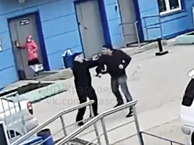 После нескольких секунд общения мужчина напал на охранника. Завязалась драка, в ходе которой оба участника упали на асфальт. На помощь охраннику прибежал его напарник.