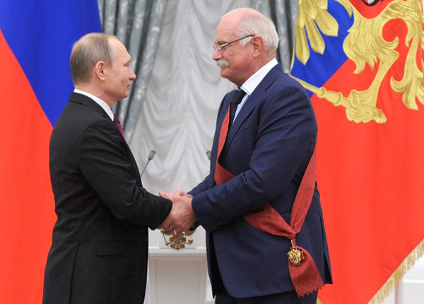 В.В. Путин и Н.С. Михалков со знаком ордена «За заслуги перед Отечеством» I степени на чресплечной ленте во время церемонии награждения. Екатерининский зал Московского Кремля. Фото: kremlin.ru Комментарий Андрея Хазина: