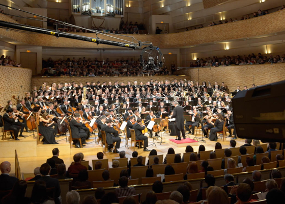© Пресс-служба Мариинского театра Безусловно, чудеса логистики и выносливости давно входят непременной составной частью в описание гергиевского феномена. Маэстро желает охватить весь земной шар, преодолеть километры музык и дорог, выстраивая траекторию очередного собственного безумного перформанса. В боевом порядке привлекаются новые технологии. Теперь живая слушательская аудитория в зале — лишь фон для камер, транслирующих происходящее тысячам и миллионам, которым на сегодняшний день предложено обняться под музыку Прокофьева. Хотел ли этого сам композитор? Сложно сказать.