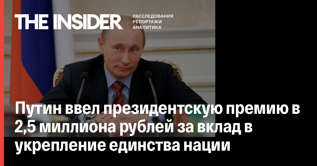 Путин ввел президентскую премию в 2,5 миллиона рублей за вклад в укрепление единства нации