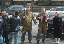 Накануне активисты Национально-освободительного движения напали на участников церемонии награждения победителей школьного конкурса "Человек в истории. Россия - ХХ век", организованного "Мемориалом". Около 20 человек в советской военной форме и с георгиевскими лентами пришли к Дому кино, выкрикивая "Фашисты!" и "Национал-предатели!". Детей, участвующих в конкурсе, а также гостей церемонии, закидали яйцами. Неизвестный облил зеленкой писателя Людмилу Улицкую. Учительниц, пришедших на конкурс, нодовцы обзывали "подстилками" и "либеральными шлюхами".