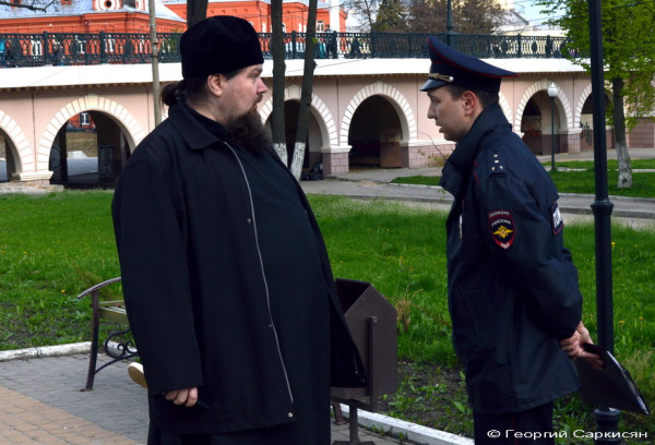 3. Это капитан проводит разъяснительную беседу с попом Игорем Голиковым о недопустимости размахивания зонтами на журналистов