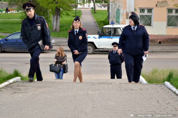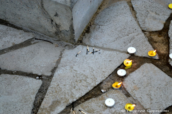 С десяток организаторов, по столько же полицейских и журналистов и полтора десятка зрителей, они же участники акции с зажиганием свечек и держанием плакатов.