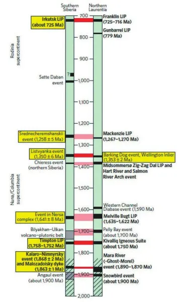 В статье, опубликованной в журнале Nature Geosciences [1], международный коллектив авторов (Россия, Канада, Швеция, США) под руководством Ричарда Эрнста, являющегося одновременно профессором Карлнтонского (Канада) и Томского государственного университетов, задался вопросом: как относительно друг друга располагались Сибирь и Северная Америка в интервале примерно от 1,9 млрд до 700 млн лет назад? Оказалось, что всё это время они находились в непосредственной близости друг от друга. Чтобы показать это, Эрнст с соавторами применили оригинальный подход. Были изучены магматические породы, встречающиеся как в Сибири, так и в Канаде в виде остатков подводящих каналов — даек — к уже уничтоженным эрозией вулканам. Их возраст определялся при помощи методов датирования U-Pb и Ar-Ar, позволяющих проделать это с точностью до нескольких миллионов лет (то есть менее процента от возраста датируемого события).