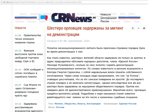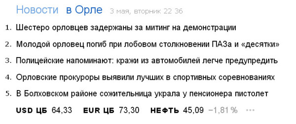 Новость о задержании шестерых орловцев на первомайском официальном митинге в топе орловских новостей.