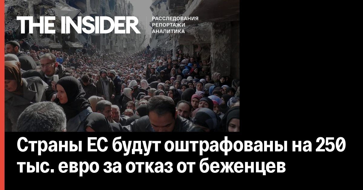 Странам ЕС грозит штраф в размере 250 тысяч евро за каждого отвергнутого беженца, передает BBC News.
