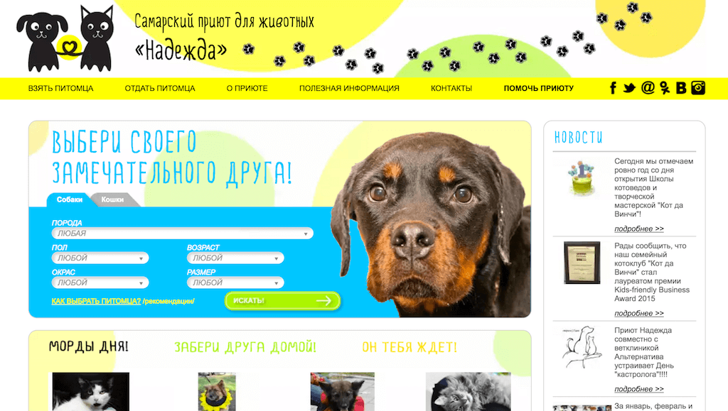 В 2011 году самарская web-студия Оверрайд бесплатно разработала сайт, на котором можно подобрать питомца из приюта, получить рекомендации по его выбору. На отдельной странице – фотографии собак и кошек, уже нашедших новых хозяев.