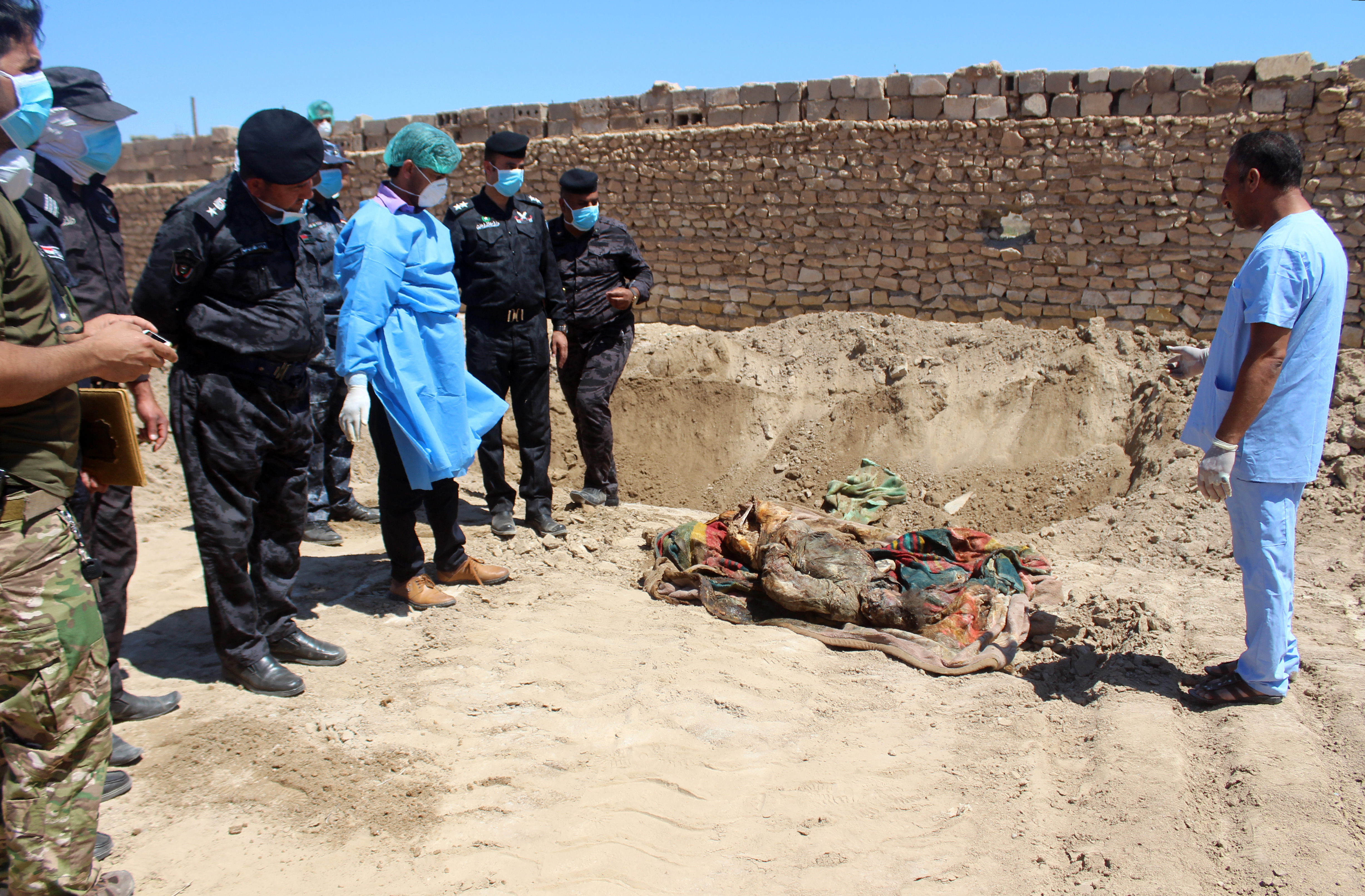 Три захоронения, в которых находились останки около 40 человек, были найдены 19 апреля на футбольном поле в Рамади