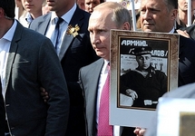 Шествие стартовало от метро Динамо и проследовало Ленинградским проспектом, 1-й Тверской-Ямской и Тверской улицами к Красной площади. Там, передает РБК, к колонне присоединился Владимир Путин с портретом фронтовика Владимира Путина-старшего, который, согласно официальной биографии российского лидера, является его отцом. Путин участвовал и в прошлогодней аналогичной акции.