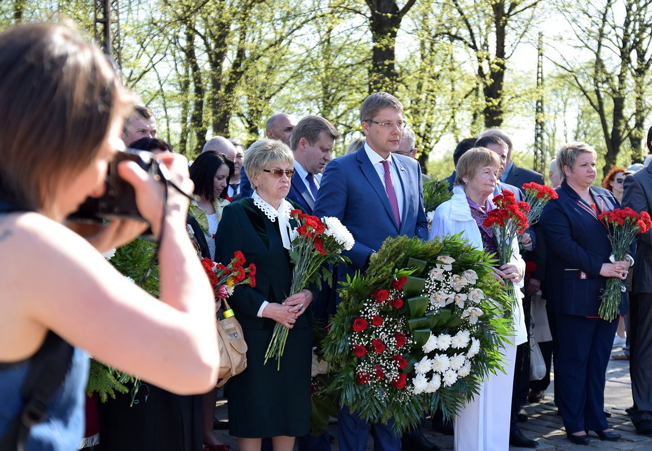 В первой шеренге — мэр Риги Нил Ушаков с небольшой группой ветеранов: двумя участницами партизанских отрядов и узницей лагеря в Саласпилсе. Помолчав у постамента, мэр обнимает и целует каждого ветерана. Вслед за Ушаковым идут депутаты Рижской думы, Сейма и Европарламента, делегации от посольств. Громче других хлопают почему-то послу Белоруссии. Глава российской делегации Александр Вешняков удостаивается одинокого «Ура!».