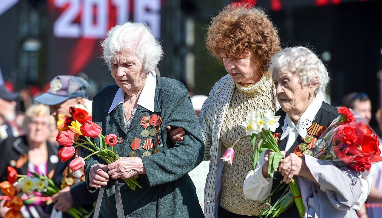 Наконец проходят ветераны — их несколько десятков человек. Пока телевизионщики интервьюируют высоких гостей, старики выходят в толпу и, сбившись в небольшие группы, смотрят по сторонам. К ним сразу устремляются люди — кто-то несет цветы, кто-то просит сфотографироваться с детьми. Волонтеры разносят старикам воду. Ветераны охотно соглашаются общаться с журналистами и рассказывают — но не о войне, а о празднике и о волонтерах, которые о них заботятся.