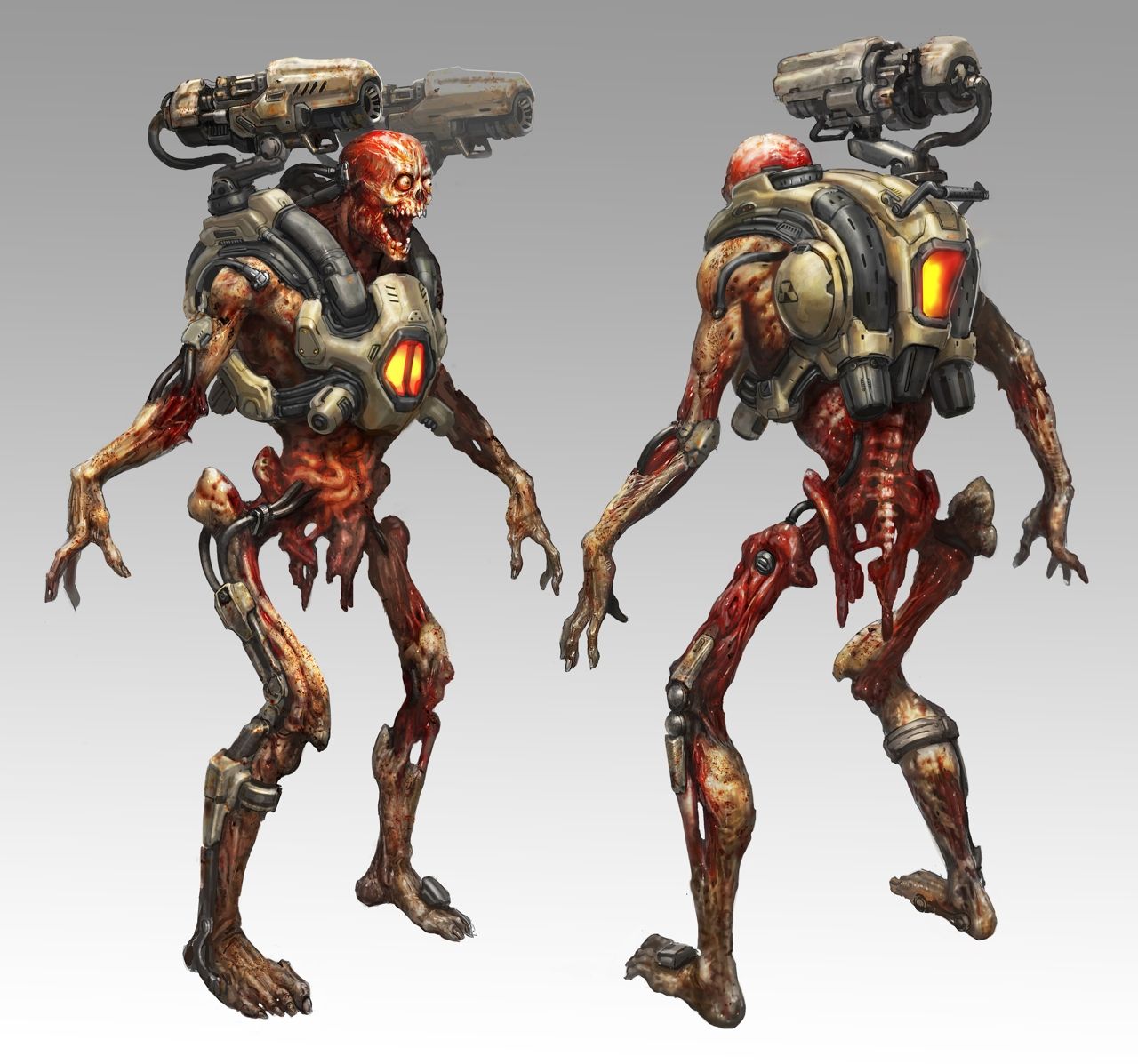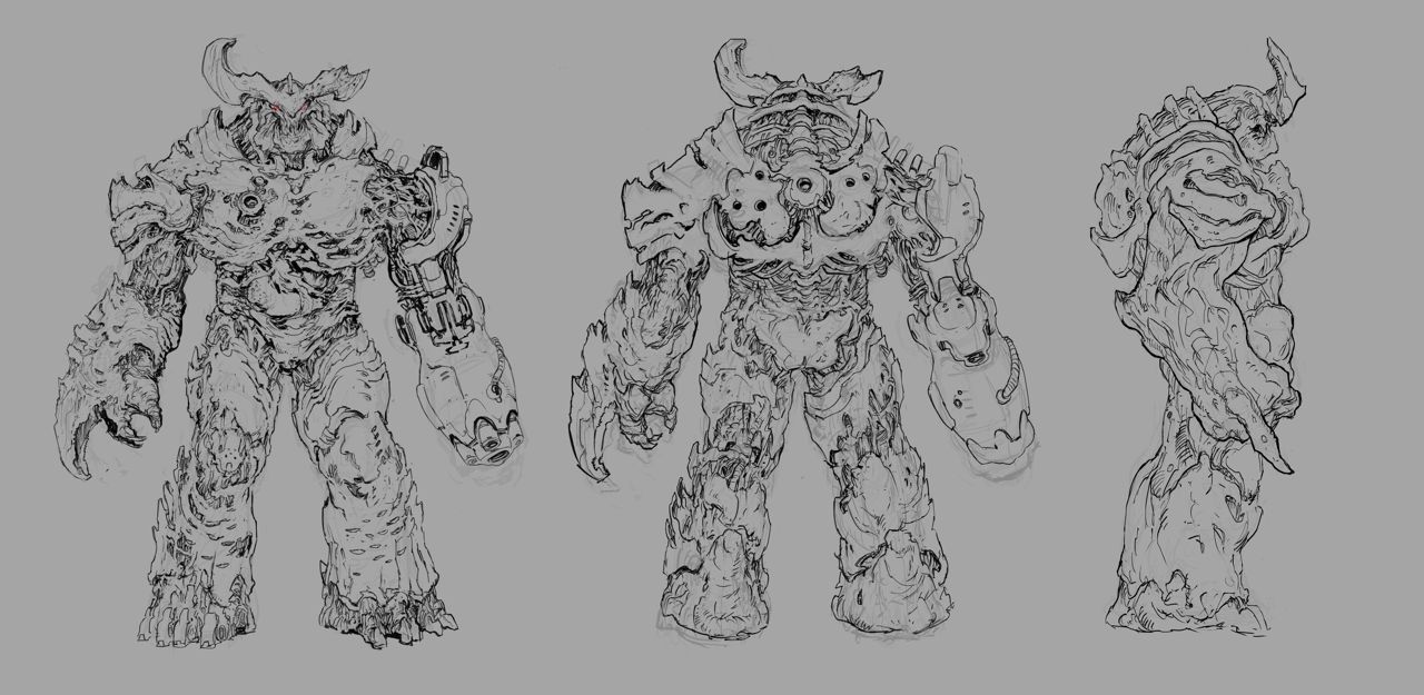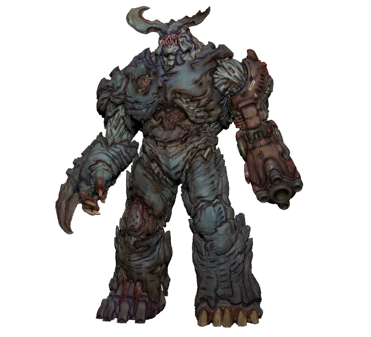 Хьюго Мартин: «Останки Кибердемона нашли во время экспедиции в ад. Его безжизненное тело подняли в наш мир, и корпорация UAC оживила его с помощью своих технологий. Эту модель создал Джейсон Мартин, основываясь на концепте, который я нарисовал в начале работы над проектом».