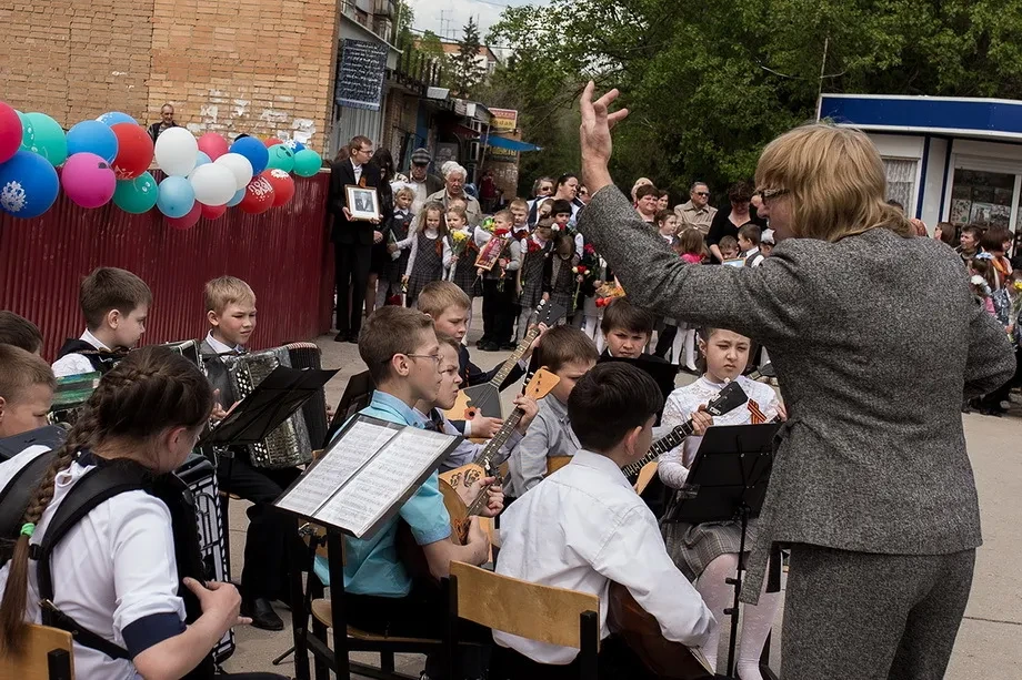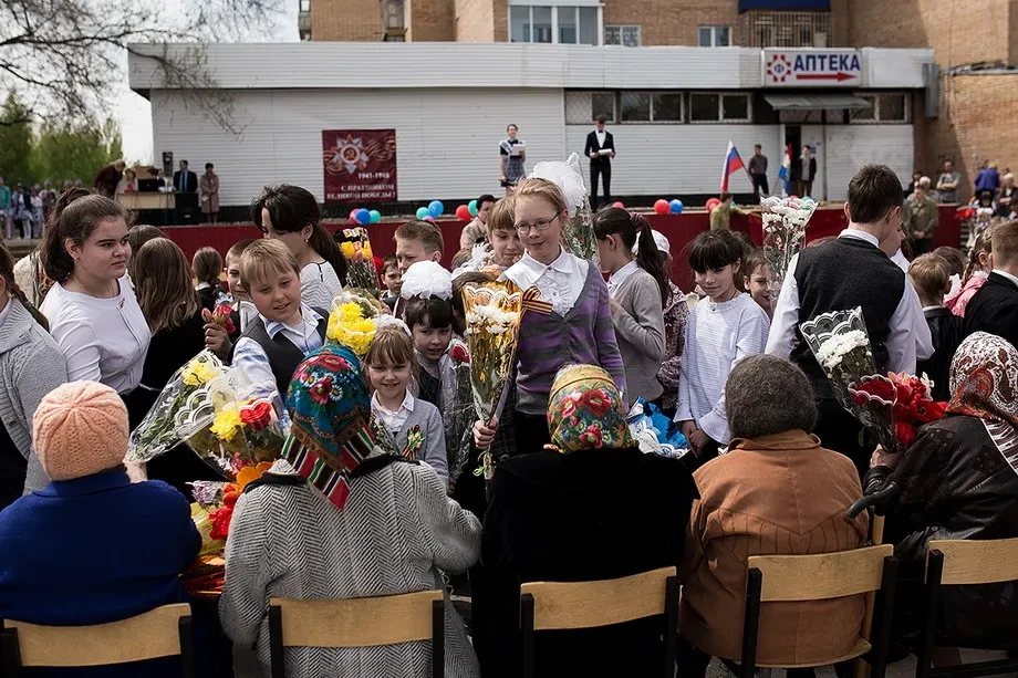 День Победы в поселке Нагорный. Творческая программа местной школы, 13 ветеранов и пустые стулья