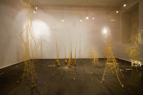 © Stella Art Foundation Игорь Макаревич и Елена Елагина. Неизвестные разумные силы. Инсталляция. 2010 Стоит упомянуть «макаронный космизм» Леонида Тишкова. Его персональная выставка под названием «Ладомир. Объекты утопий» (2006) обращается к космистам через футуристические конструкции, строительным материалом для которых послужили макароны.