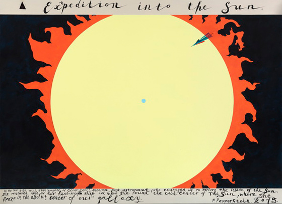 © Павел Пепперштейн, 2015. Предоставлено Kewenig Gallery Павел Пепперштейн. Экспедиция на солнце. 2015 Примеры скоропостижной капитализации космистских настроений в современном искусстве встречаются еще раньше: стоит вспомнить хотя бы выставку-аукцион «Русский космизм и актуальное искусство России», которая проходила в мае—июне 2014 года в лондонской галерее Erarta. И здесь важно понимать, что широкая представленность космизма и его экспорт сегодня вовсе не являются результатом коллективного импульса, связанного с желанием реабилитировать теоретический проект, якобы исчезнувший с карты воображаемого почти сотню лет назад. Все это скорее обнаруживает некоторую преемственность тематических интересов, парадоксальным образом существующую в актуальном искусстве, несмотря на разницу поколений и контекстов, формальных подходов и языков. После долгого забвения космологические мотивы вновь появляются в советском искусстве уже в 1980-х, в условиях затянувшейся аллергии на гонку космических программ, заключившую идею космоса в позитивистские границы и сжавшую ее в геополитические, милитаристские тиски. Вспомним некоторые из них.