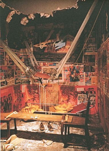 © Centre Georges Pompidou, Paris Илья Кабаков. Человек, улетевший в космос из своей квартиры. Инсталляция. 1986 В 1986-м Илья Кабаков представляет свою инсталляцию «Человек, улетевший в космос из своей квартиры», где космос становится территорией абсолютной свободы, куда вырывается человек, совершая свой индивидуальный побег от застойной позднесоветской безысходности. В 1990-е с космическими и космистскими темами начинает работать Сергей Шутов. Его проект «Луна. Луна» (1996) — это аналоговые фотографии собственных картин с изображенными на них лунами-планетами (пленка, по словам автора, была использована для усиления «космичности» изображения).