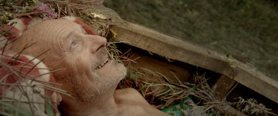 © Вверх! Поле молчания. Выставка объединения «Вверх!». 2011 В проектах «Вверх!» в разное время по совокупности участвовали 20 человек. И хотя на сегодняшний день объединение фактически прекратило свое существование в качестве творческого коллектива, его участники не спешат сбрасывать космизм со счетов и в некотором смысле сохраняют причастность к тому самому «храму». В феврале этого года фильм «Эликсир», снятый одним из участников «Вверх!» Даниилом Зинченко, был показан в программе Forum Берлинского кинофестиваля. Это полнометражное кино о самой России, которая, по словам художника, оказывается пространством пересечения горизонтали и вертикали, простора (широты) и космоса (высоты). На поверку фильм представляет собой плотный клубок мифов и архетипических образов, который не поддается распутыванию (и, видимо, согласно замыслу, в таковом не нуждается). В нем есть сказочный русский лес и болота, Серафим и Плотник, Космонавт и Партизан, Чиновники и даже Родина-мать, показанная, правда, не известным памятником на Мамаевом кургане, а далеким подмигивающим созвездием. Сложно сказать, разглядела ли фестивальная публика локальный философский подтекст «Эликсира», но российскому зрителю ясно наверняка: миф о России — это космистский миф, невозможный без своих специфических религиозно-философских оснований.