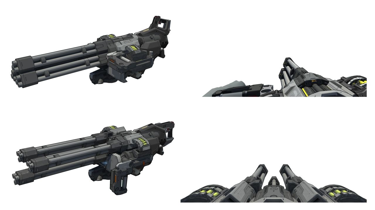Брайан Флинн: «Мы научили обычный пулемет раскрываться в режим турели с заметно увеличенной скорострельностью и уроном. В стандартном режиме пулемет стреляет из трех внешних стволов. В развернутом — изо всех девяти!»