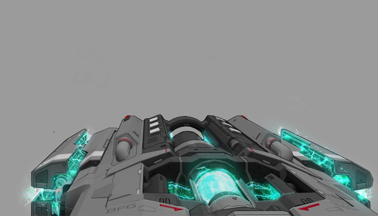 Брайан Флинн: «Я хотел создать что-то новое, но сохранить облик и ощущение оригинального BFG. Другая задача — явно показать игроку все компоненты оружия в момент стрельбы. В режиме от первого лица игрок видит центральный цилиндр, который вращается во время зарядки оружия, и боковые элементы, которые светятся под воздействием энергии. Круглый конец BFG отлетает назад, выпуская зеленый, наэлектризованный шар смерти».