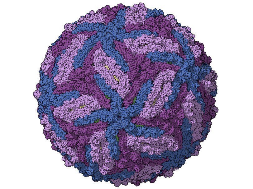 Компьютерная модель белковой оболочки (капсида) вируса Зика Manuel Almagro Rivas/Wikimedia Commons После того, как в 2015 году в Бразилии и других странах Латинской Америки началась эпидемия лихорадки Зика, врачи обратили внимание на резкое повышение числа случаев микроцефалии у новорожденных. Связь болезни и патологии в развитии эмбриона представлялась высоковероятной, но все-таки на нее указывали лишь косвенные свидетельства. Теперь влияние вируса Зика на развитие эмбриона получило экспериментальное подтверждение. Создание модели развития болезни на лабораторных животных должно также облегчить поиски вакцины или других методов лечения.