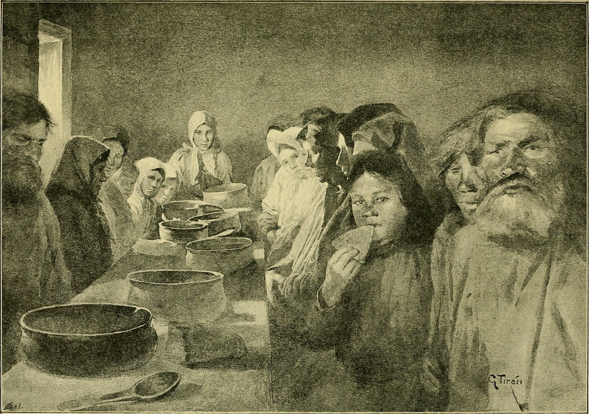 Больные тифом во время голода 1891-1892Фото: Из книги The Red Cross in peace and war Общественные и волонтерские организации сыграли не меньшую роль в смягчении последствий голода. Важнейшей из таких организаций было Общество Красного Креста, собравшее около пяти миллионов рублей на помощь пострадавшим. Важно отметить, что Красный Крест занимался решением не только текущих проблем —лечением больных, организацией общественных столовых, ночлежек, раздачей зерна и тому подобным, но и уменьшением долгосрочного ущерба. Эта организация закупала для крестьян новый скот, орудия, фураж и так далее, — они стремились не только спасти крестьянские жизни, но и вновь поставить их хозяйства на ноги.