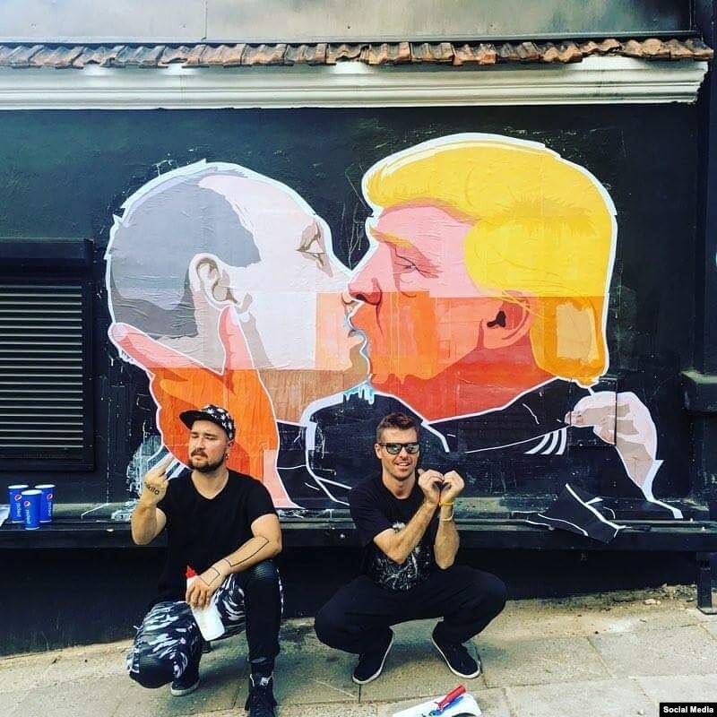 Миндаудас Бонану, 34-летний графический дизайнер, поместил на стене вильнюсского ресторана с американской кухней граффити с изображением целующихся Владимира Путина и Дональда Трампа, президента России и кандидата в президенты США от Республиканской партии.