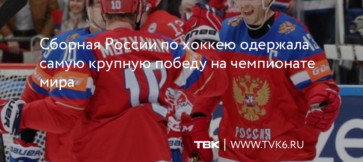 Хоккеисты сборной России одержали самую крупную победу на чемпионате мира, проходящем в Москве и Санкт-Петербурге.
