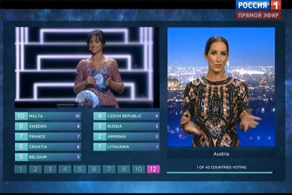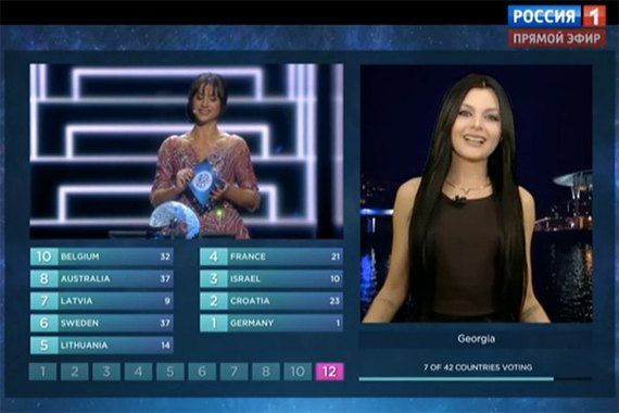 Австралия просто прекрасная! Баллы объявляет ведущая новостей, 12 баллов Бельгии.