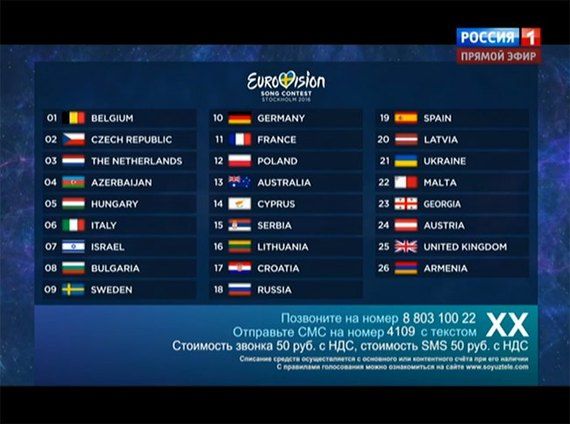 Мэр Риги Нил Ушаков призвал всю Латвию голосовать за Россию, а всю Россию — за Латвию. Всем по 12 баллов. Ну, такое — я бы за латышскую песню не проголосовал, она, в отличие от прошлого года, крайне так себе.