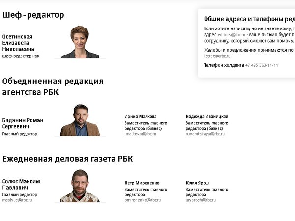 Смотрите также: Председатель СПЧ предложил не торопиться с выводами в ситуации с РБК Песков рассказал об обсуждении с бывшим шеф-редактором РБК ее отпуска Мария Мстиславская Руководство РБК уходит из холдинга MDK пригласило топ-менеджеров РБК на работу