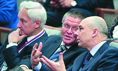 Помощник президента РФ Андрей Белоусов (крайний слева), министр экономразвития Алексей Улюкаев (в центре)* и министр финансов Антон Силуанов (справа) стали соавторами фэнтези на тему «догоним и перегоним Америку по росту ВВП»*