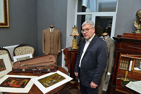Евгений Водолазкин среди артефактов прошлого — декораций советского фильма «Приключения Шерлока Холмса и доктора Ватсона». В его новом романе тоже почти детективный сюжет