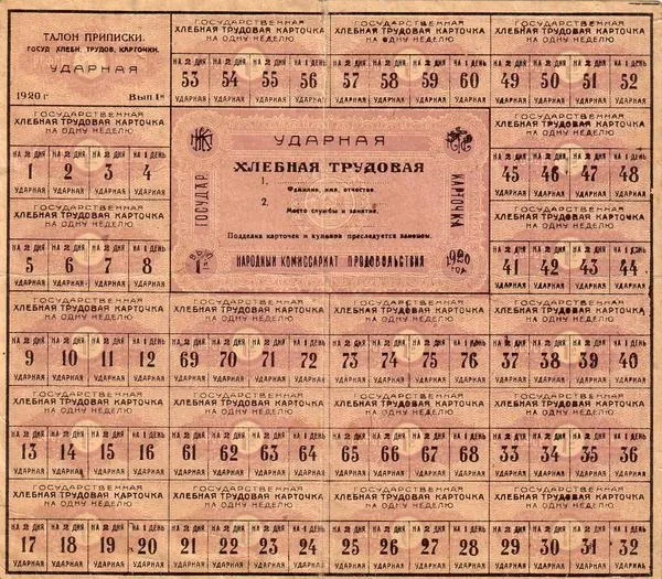 Магазины закрылись, как и рестораны. Торговля прекратилась. Распределение продуктов проводилось по классовому признаку. Вводился так называемый «трудовой паек», что означало: нетрудящихся не кормить! «Тунеядцев», то есть тех, кто не пристроился к новой власти, не только лишали еды, но и выгоняли из квартир.