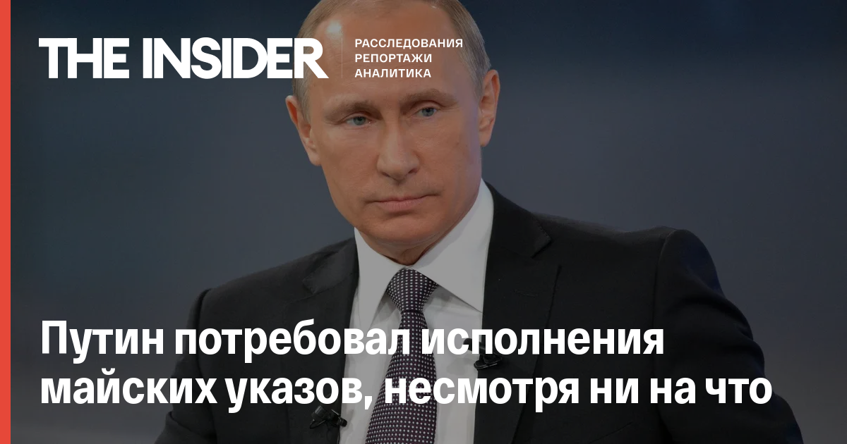 Владимир Путин потребовал безусловного исполнения майских указов, подписанных в 2012 году, вне зависимости от внешних условий, сообщает ТАСС.