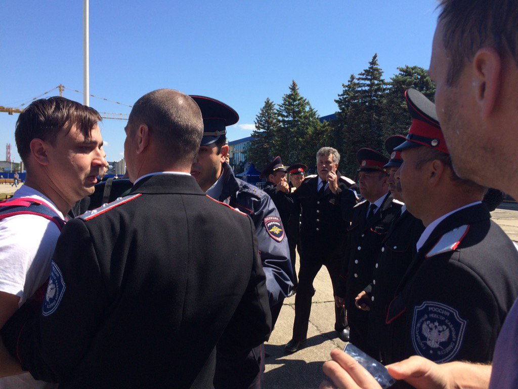 Напали казаки, человек 10 в парадной форме и еще столько же в обычной одежде. Вот, например, один pic.twitter.com/20E4LYhbp1