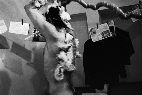 © Александр Ляшко Вадим Флягин, Сергей Спирихин, Владимир Козин, Игорь Панин. Большая стирка. Перформанс в трех частях. Галерея «Борей», Петербург. 19 июля 1996 года