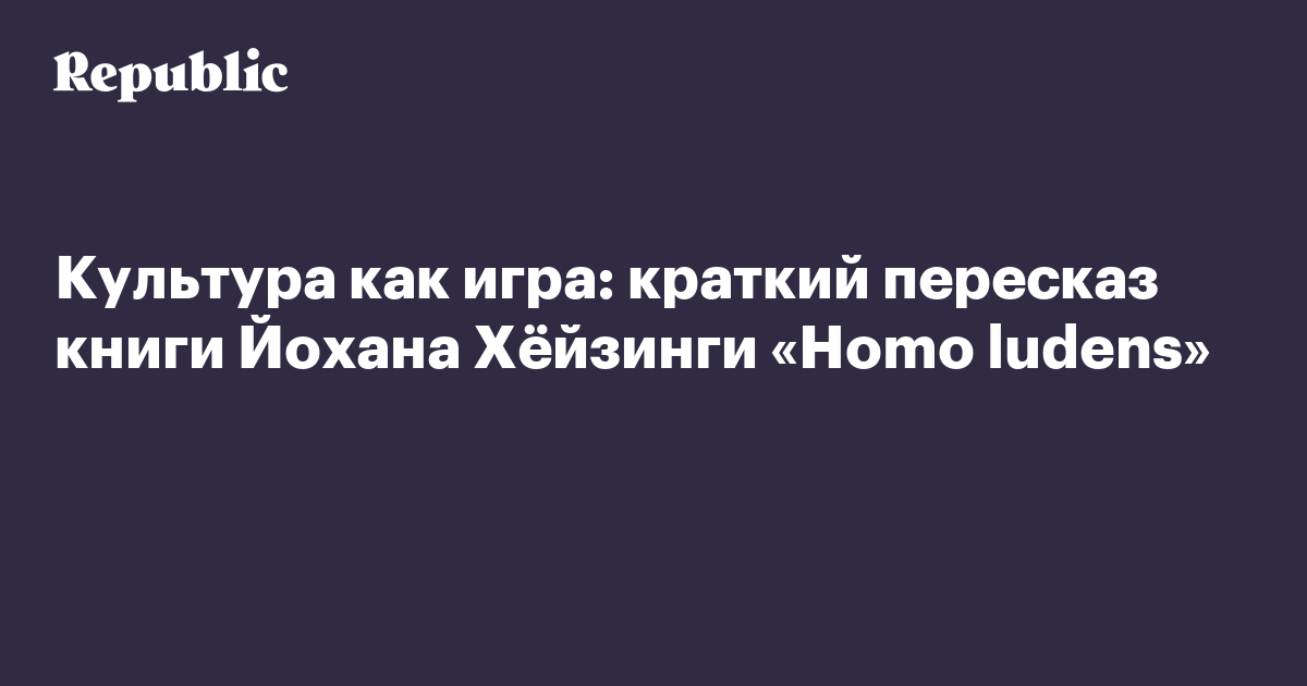 Культура как игра: краткий пересказ книги Йохана Хёйзинги «Homo ludens»