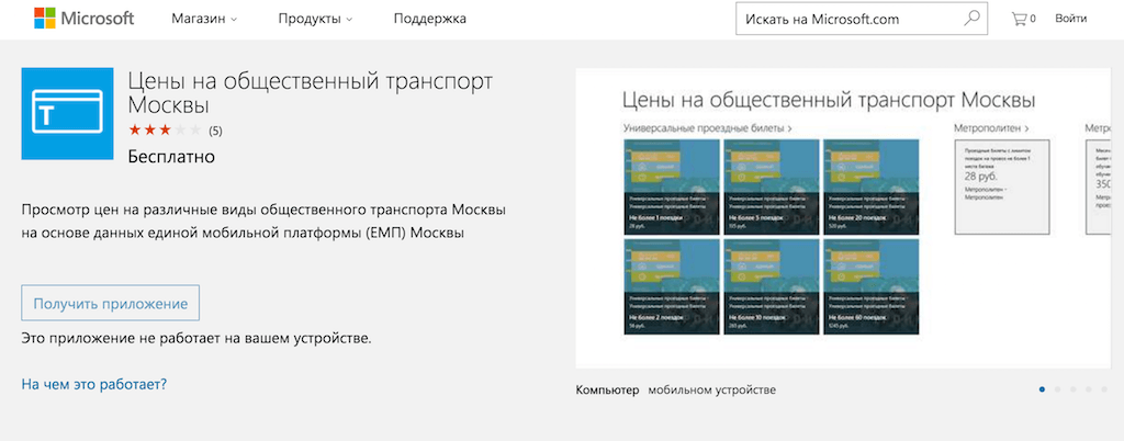 Приложение позволяет просматривать цены на различные виды общественного транспорта Москвы на основе данных единой мобильной платформы (ЕМП) Москвы.