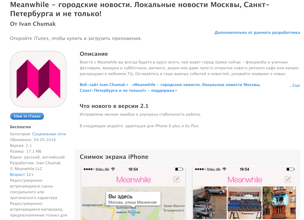 Meanwhile – это городской канал с локальными новостями, запущенный совместно с официальным сайтом Москвы mos.ru. С помощью приложения можно узнавать, что происходит в непосредственной близости прямо сейчас, и обсуждать это с теми, кто находится рядом.