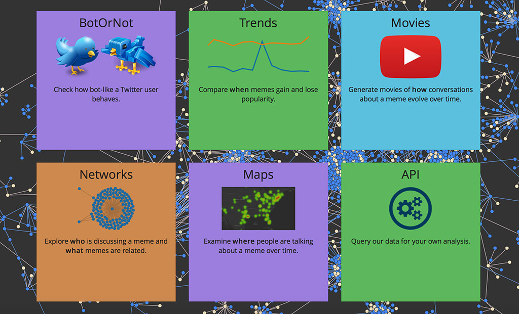 OSoMe (Observatory on Social Media, произносится как awe•some), проект, направленный на изучение распределения информации в социальных медиа, разработал набор инструментов, с помощью которых можно исследовать, как идеи распространяются через социальные сети.