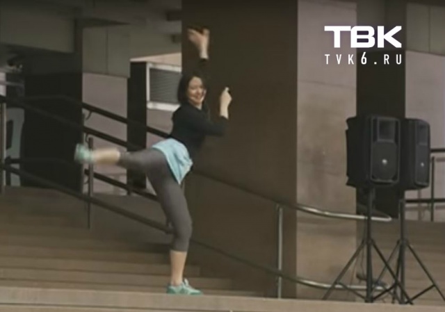 20 мая на площади перед БКЗ красноярцев тренировала министр культуры Красноярского края.