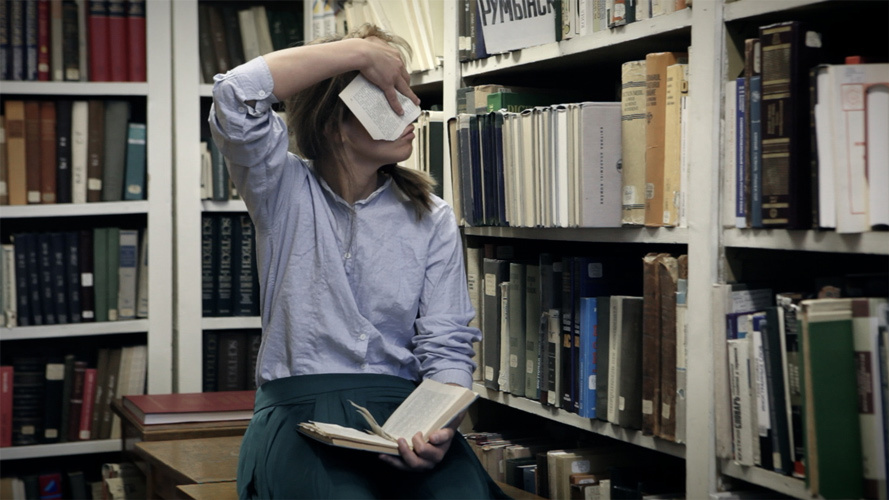 — Перформативная часть мне близка, но вообще мне все важно. Видео — это техническое решение. Проще организовать двухчасовую съемку в библиотеке, чем водить в это полузакрытое место зрителей. Диплом я тоже вначале думала решить как перформанс. Но в видео я как-то тоже вросла. Я его тоже люблю. Люблю монтировать, серьезно (смеется). Последнее видео монтировала две недели, не отходя от компьютера. Видео более иллюзорно, тогда как в перформансе ты видишь реальных людей. И, чтобы добиться нереальности, которая мне интересна, нужно видео. Кроме того, перформанс долго репетируешь, а потом один раз показываешь. А видео снимается один раз, а потом с помощью монтажа создается ритм, то есть уже после все делается: можешь сфокусироваться на какой-то детали, вносится дополнительное измерение, создаешь свой мир. На 10—15 минут я погружаю человека в эту историю, чего с помощью перформанса добиться сложно, потому что он более реальный.