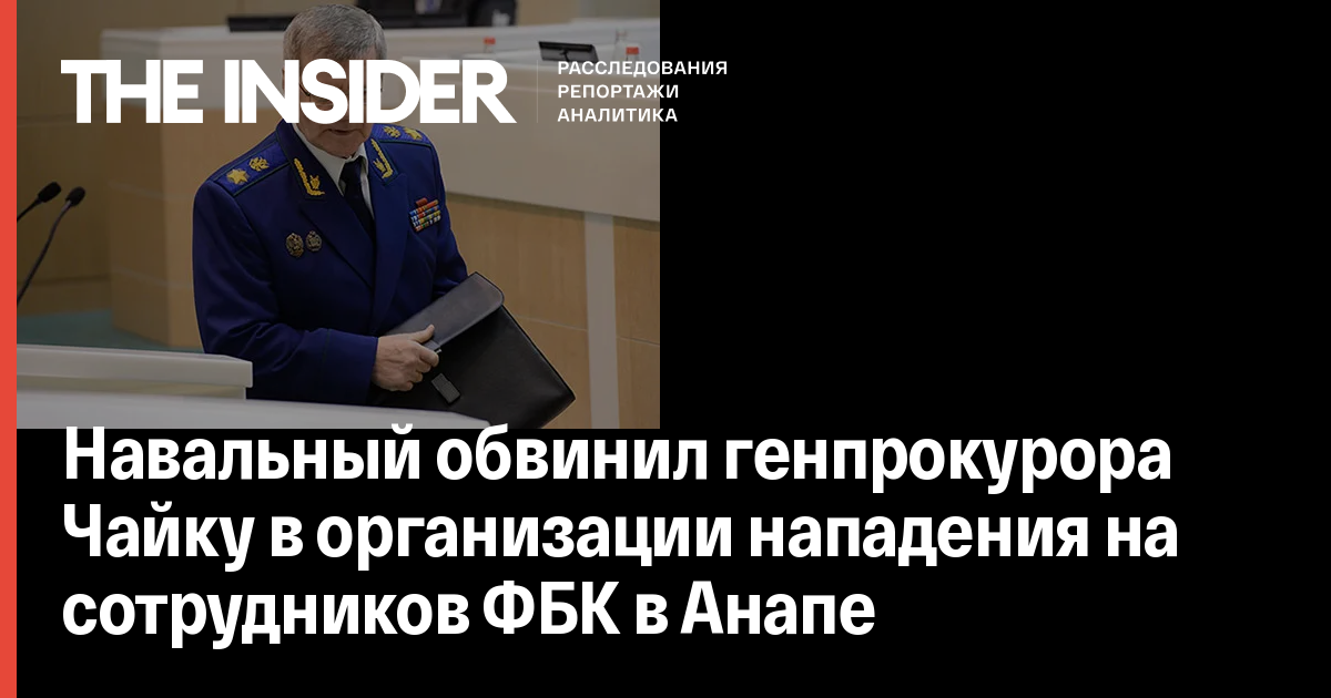 Глава Фонда борьбы с коррупцией Алексей Навальный обвинил генпрокурора Юрия Чайку, его сына Артема Чайку и прокурора Краснодарского края Леонида Коржинека в причастности к нападению на его подчиненных в Анапе.