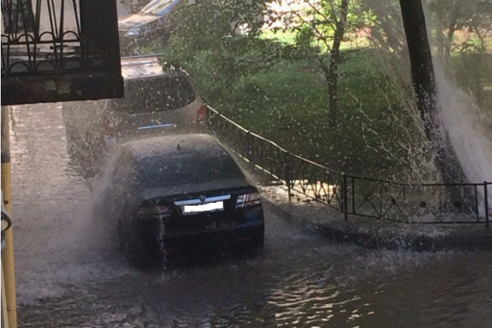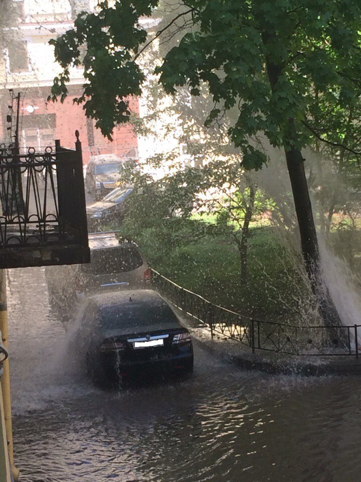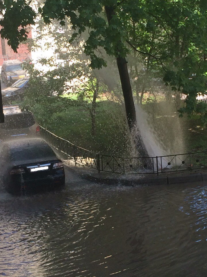 Во дворе дома в переулке Гривцова забил фонтан, сообщают очевидцы в соцсетях. Струя воды облила стоящие рядом машины.