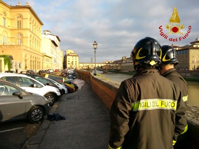ЧП на южном берегу реки Арно рядом с мостом Понте Веккьо произошло около 6:30 утра. В яму попали 20 машин.