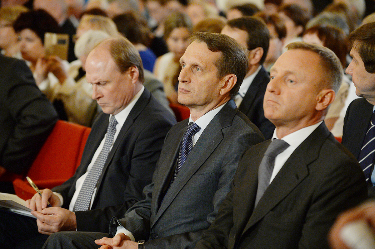 Владимир Толстой, Сергей Нарышкин, Дмитрий Ливанов на пленарном заседании Первого Съезда Общества русской словесности . Фото: С. Власов / Пресс-служба Патриарха Московского и всея Руси «Повестка дня патриарха насыщена, и каких-то свободных мест практически не существует. Но когда Владимир Владимирович обратился ко мне с таким предложением, я подумал, взвесил это предложение, помолился и принял его», — цитирует «Коммерсантъ» сделанное на пленарном заседании Общества напоминание патриарха Кирилла об этом высоком статусе.