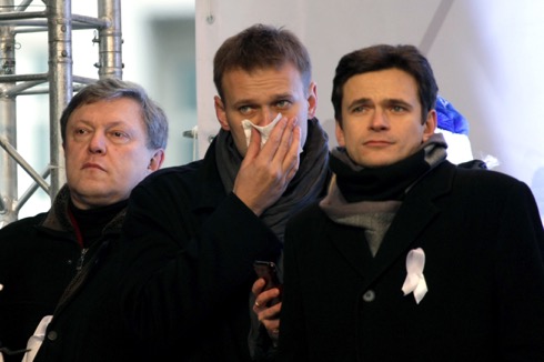 На митинге «За честные выборы» Григорий Явлинский (слева) и Алексей Навальный (в центре) уже стояли рядом. Говорят, тогда Явлинский тоже предлагал «забыть старое», Москва, 24 декабря 2011 года