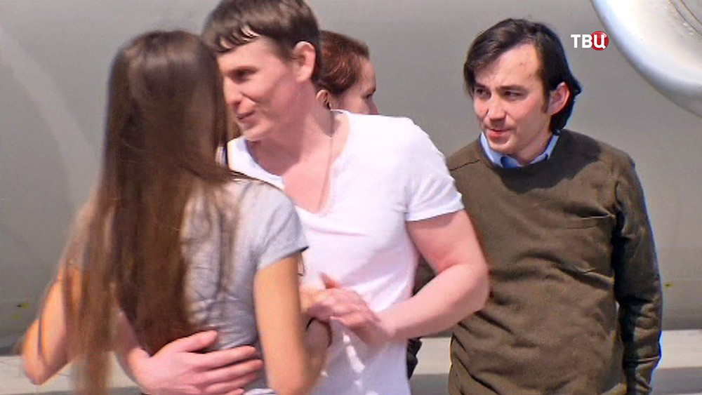Примерно за час до того, как Савченко доставили в аэропорт Ростова, в правительственном терминале Внуково 3 приземлился небольшой самолет специального отряда «Россия» Ан-148, на борту которого из Киева на родину прибыли двое бойцов милиции самопровозглашенной Луганской народной республики (ЛНР) — Евгений Ерофеев и Александр Александров. Этих россиян, захваченных солдатами ВСУ чуть более года назад на Востоке Украины и давших показания о том, что они являлись на момент пленения действующими военнослужащими Главного разведывательного управления (ГРУ) Генштаба Минобороны РФ, накануне, 24 мая, помиловал президент Украины Петр Порошенко. У трапа их встречали радостные жены. Издалека объятия воссоединившихся супружеских пар фиксировали съемочные группы государственных телеканалов. «У входа в спецтерминал аэропорта Внуково стояли двое охранников со списком тех, кому разрешен въезд, — рассказывает корреспондент «Новой газеты» Павел Каныгин. — Журналистов четырех допущенных телеканалов — Первого, НТВ, ВГТРК и RT предупредили о событии еще рано утром. Однако кроме меня, сотрудников радио «Свобода» и канала Life, там никого не было. Ни ликующих толп, ни групп поддержки, ни активистов патриотических движений, ни представителей ЛНР».