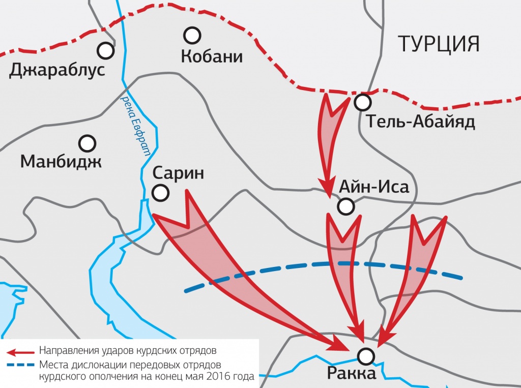 24 мая министр иностранных дел РФ Сергей Лавров заявил о готовности России поучаствовать в главном сражении против «Исламского государства»*: «Конечно, Ракка — это одна из целей антитеррористической коалиции, так же как и иракский Мосул. Мы убеждены, что можно было бы эффективнее и быстрее освободить эти населенные пункты, если бы военные наши (России и США) начали координировать свои действия гораздо раньше. Сейчас шанс на то, что такая координация состоится, есть», — заявил главный российский дипломат. При этом он пояснил, что речь идет о готовности российской авиации подключиться к ударам с воздуха, тогда как войска Башара Асада могут поддержать курдов на земле.