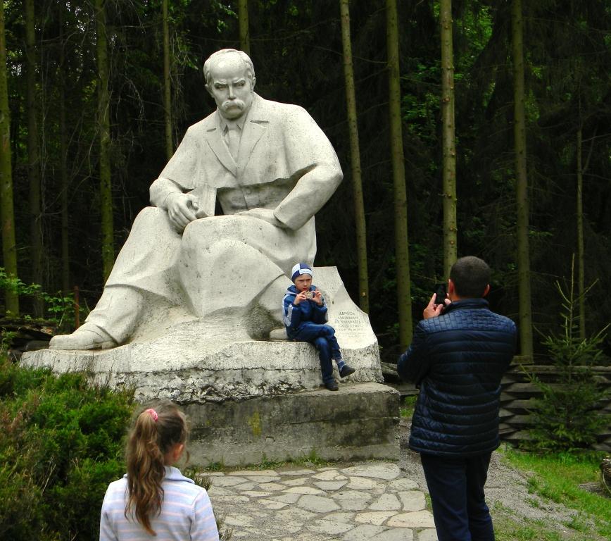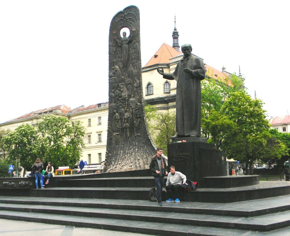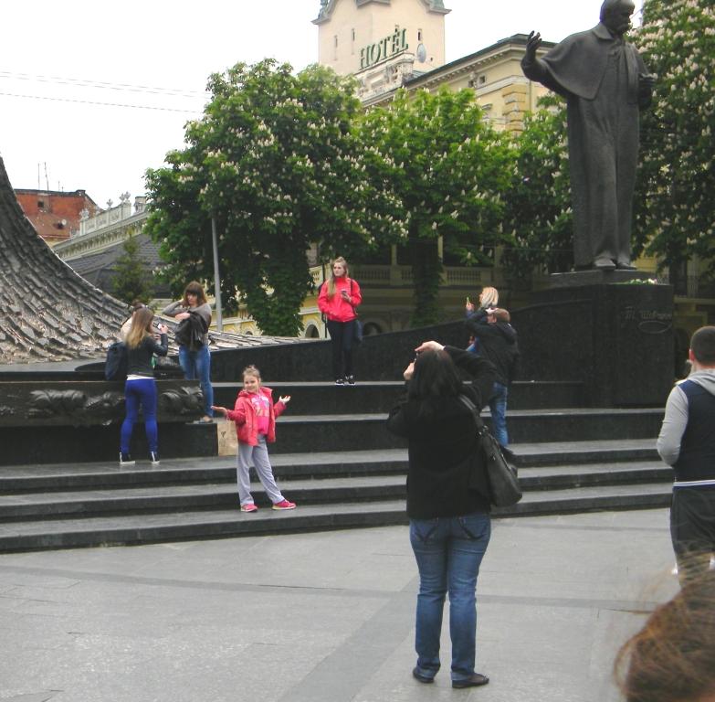 Внизу же сохранял невозмутимость Тарас Шевченко. Туристы и львовяне его любят и охотно фотографируются на фоне поэта.